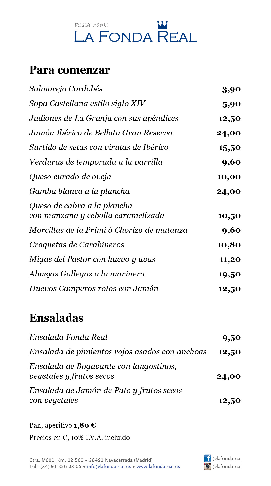 • Carta Restaurante