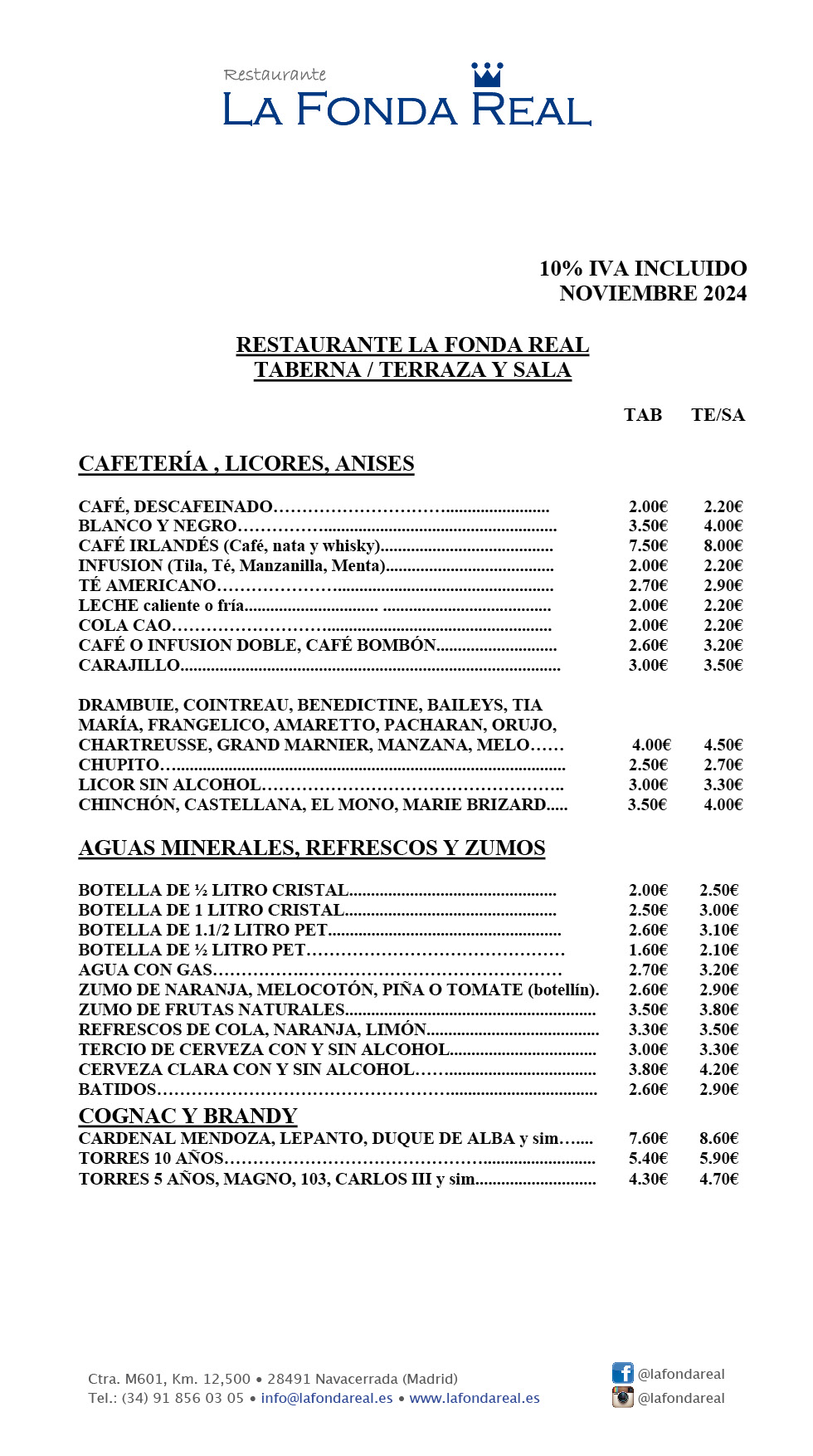 • Carta Restaurante